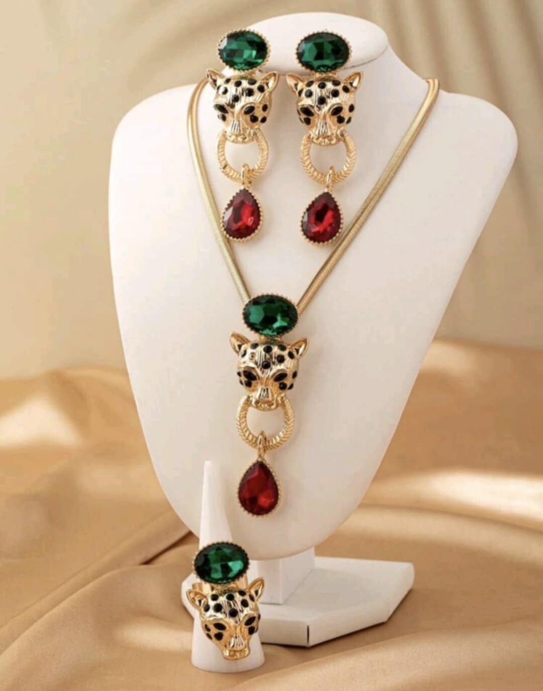 Collier boucles et bague en motif léopard de luxe 3D animal strass goûté d’eau