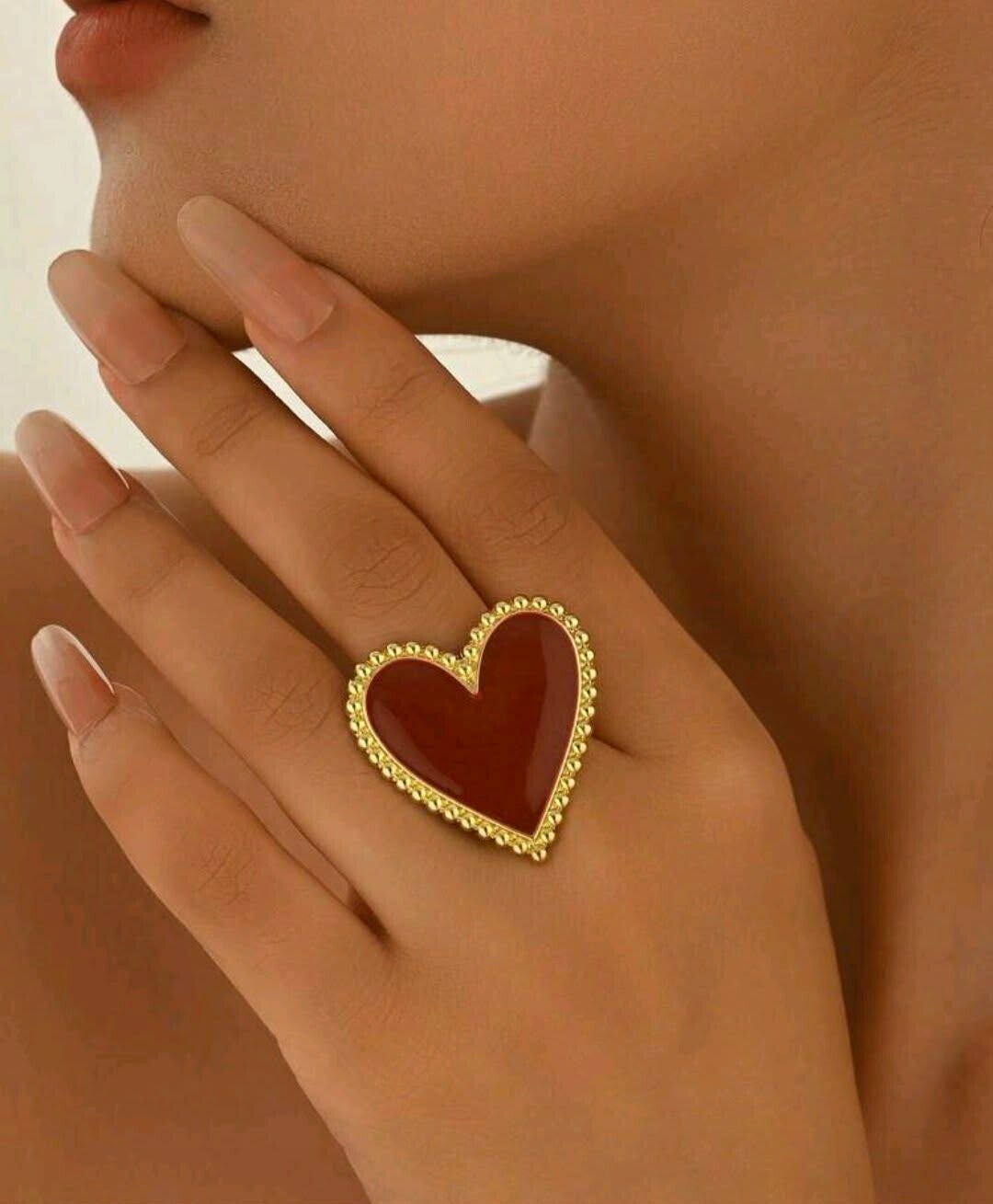 Bague en forme de cœur rouge